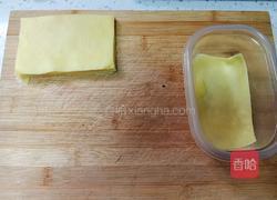 10.大家把凉透的千层皮切成盒子的尺寸,在盒底放入一张。