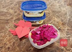 16.我做了芒果口味和火龙果口味的千层盒子蛋糕各两个。做好后最好在冷藏1个小时再食用。都做好后淡奶油会有的融化。